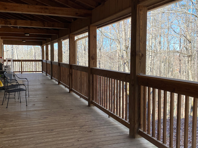 Custom built renovated home. Newer 50 year architectural roof (2020), two HVAC systems replaced (2022), hot water heater replaced (2021), well tank, gutters, flooring, tile, paint, in-law suite with kitchenette, and all of the yellow pine tongue and groove walls and ceilings that are so popular in the Georgia mountains. This home has 4 bedrooms, 3.5 baths (with shower almost done for full 4th bathroom) and approximately 3000 sf. Vaulted ceilings, massive beams and a treehouse view. There are two huge covered decks and a seasonal view of the lakes. Secluded. Quiet. Your POA dues include the use of two lakes and two boats! Owner is a licensed real estate agent in the State of Georgia. Please contact owner directly at number provided below.