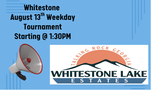 We’re pleased to announce that Whitestone will be hosting a weekday tournament on Wednesday, August 13th, on Lake 2, beginning at 1:30 PM.